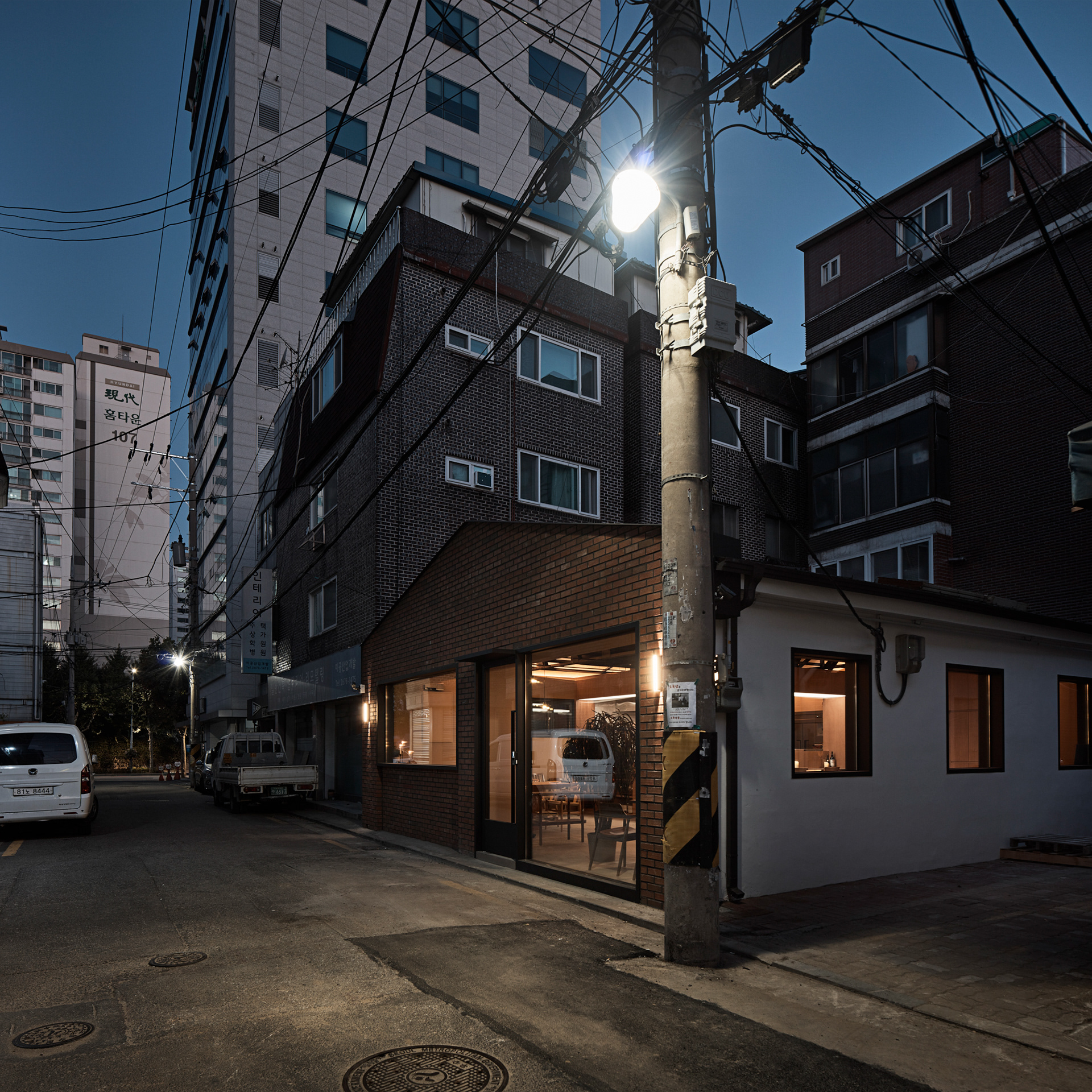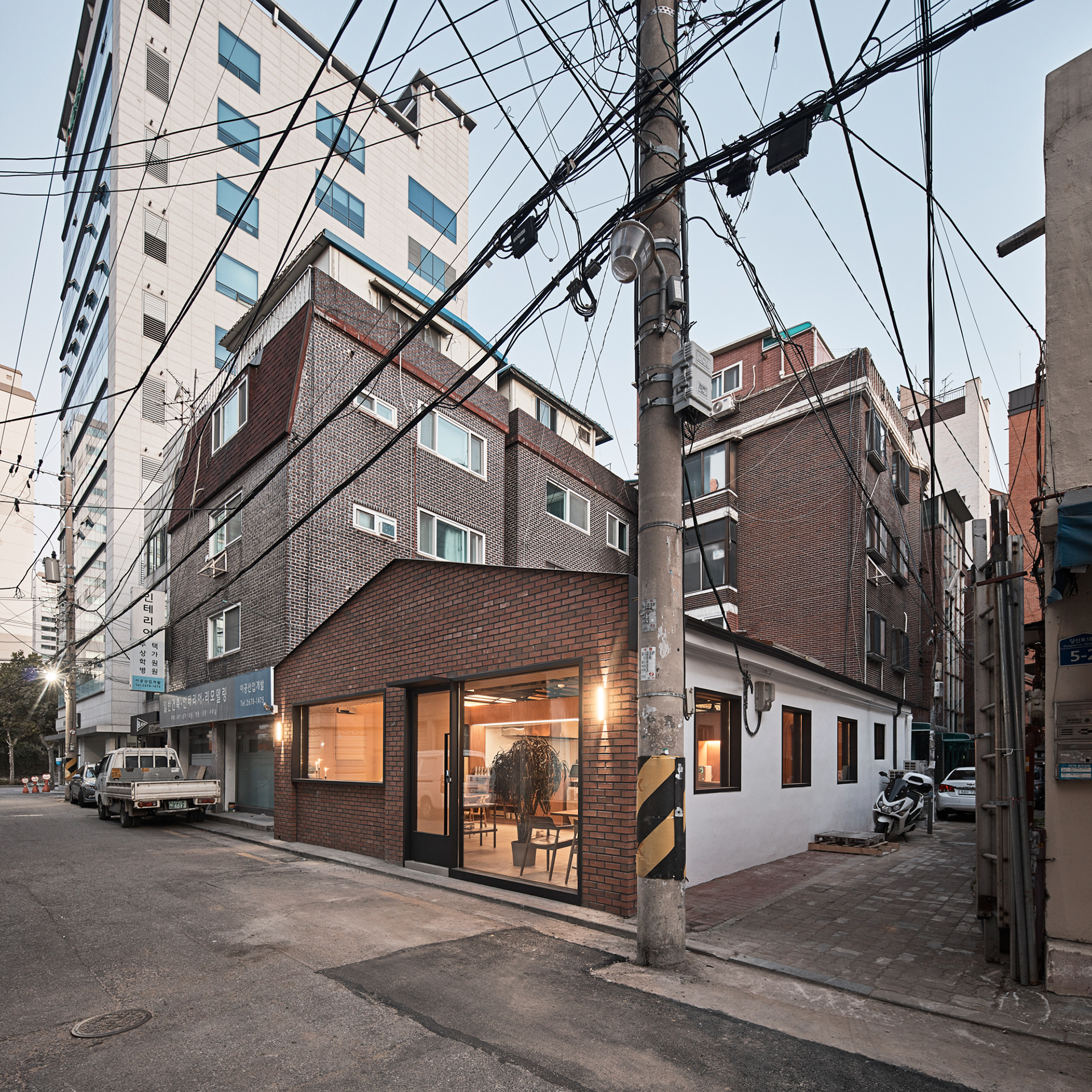 30여년간 공장과 창고로 쓰이던 건물을 지역의 레스토랑으로 만들기 위해 우리는 공간의 표정, 공간의 분위기를 생각하며 설계를 시작했다. 건물이 위치한 영등포구 당산동 골목은 주로 새벽에 문을 여는 청과물 도매상, 물류창고 형식의 작은 점포들, 주로 밤에 영업하는 카페형의 퇴폐업소들이 밀집해 있어서 사람의 인적이 드문 편이었다.